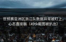世预赛亚洲区浙江队数据异常被盯上,心态直接崩(49tk截图被扒出) 近日,围绕“浙江队”在世预赛亚洲...
