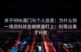 关于99tk澳门与个人信息:为什么你一填资料就会被精准盯上:别等出事才补救 近几年,线上平台越来越多...