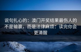 说句扎心的:澳门开奖结果最伤人的不是输赢,而是法律麻烦:读完你会更清醒 很多人把赌输当成最坏的结局:...