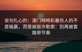 说句扎心的:澳门時時彩最伤人的不是输赢,而是被敲诈勒索:别再被套路带节奏 输赢本身有时还能自我消化,...