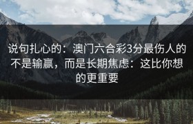 说句扎心的:澳门六合彩3分最伤人的不是输赢,而是长期焦虑——这比你想的更重要 很多人把赌局的输赢当成...